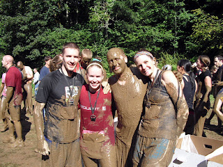 I just had to include this picture of my friend Bridget trying to daintily navigate under the barbed wire for the least amount of mud coverage she could manage, while her husband in front of her dove completely under. So great!